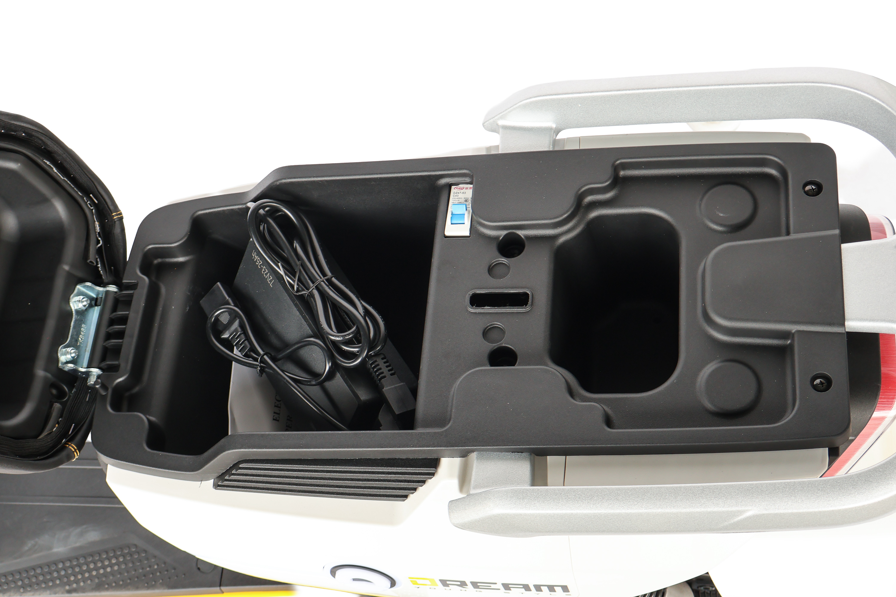 Електроскутер SUNRA Dream 5 - це унікальне поєднання футуризму і технологічності. Крім яскравого дизайну, ця модель дійсно ефективна. Оснащений дисковими гальмами, двигуном потужністю 1200 Вт і актуальним графеновим акумулятором 72 В 26 А·год, так що Dream 5 має швидкість до 50 км/год і наділений запасом ходу на одному заряді до 80 км. Інтелектуальні функції дозволять вам повністю контролювати ваш транспорт за будь-яких дорожніх умов. Незамінний міський супутник для тих, хто любить виділятися.